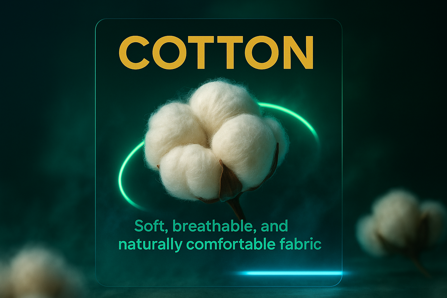 A visually striking image featuring cotton with neon accents. The text highlights its soft, breathable nature, creating a modern and appealing aesthetic.