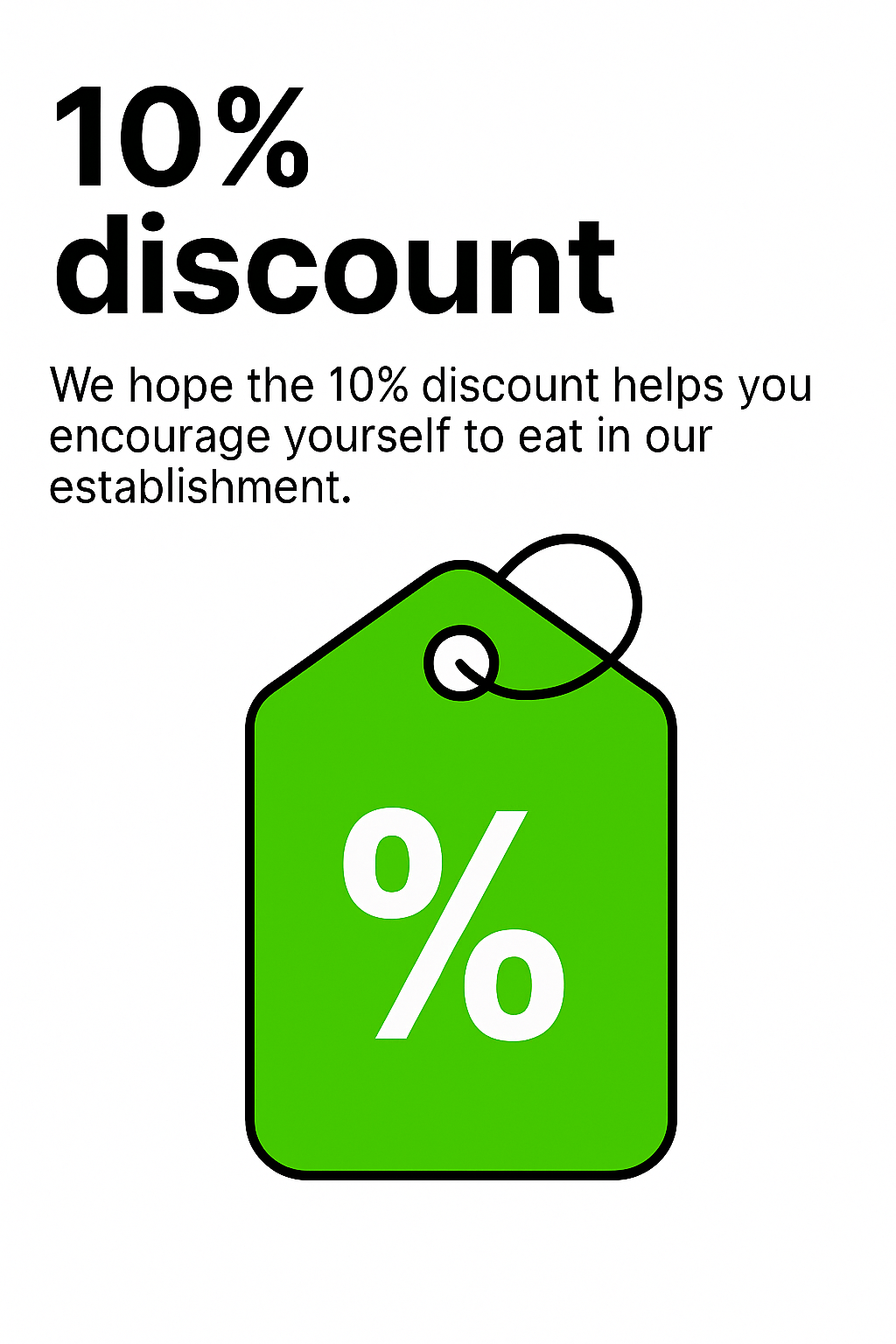 Simple yet effective promotional graphic featuring a discount tag design, suitable for restaurant marketing and customer engagement.