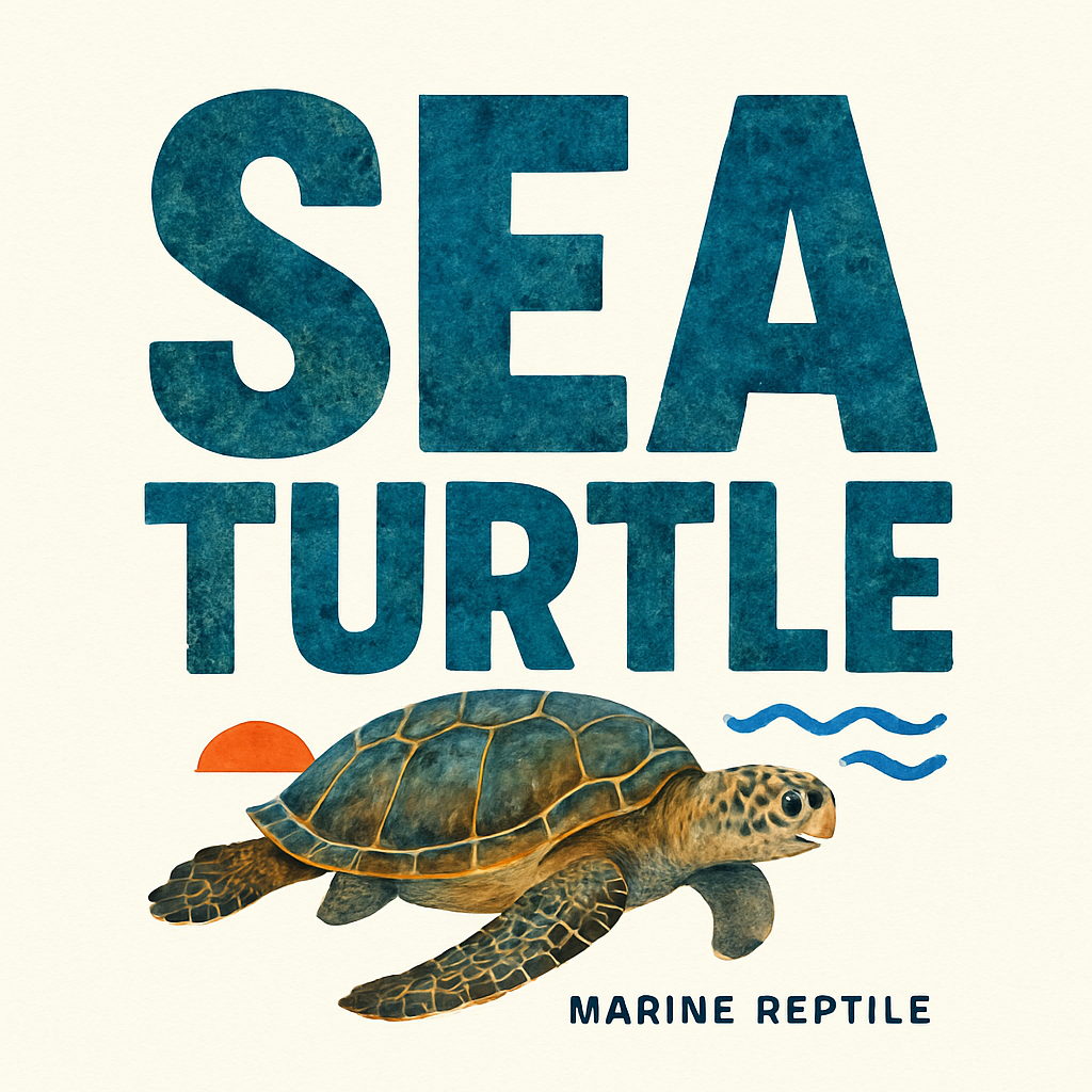/Collection: /by davooda/Type: PNG/A vibrant illustration of a sea turtle accompanied by bold text, suitable for educational or environmental awareness materials. The design features a playful visual style with earthy colors.