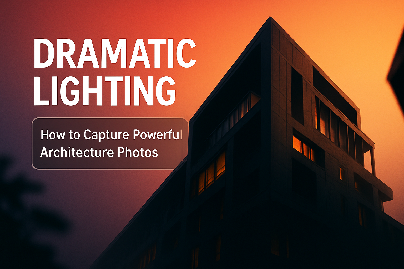 /Collection: /by davooda/Type: PNG/This image is a promotional graphic focusing on capturing dramatic lighting in architecture photography. It combines modern design elements with a moody color palette, appealing to photographers.