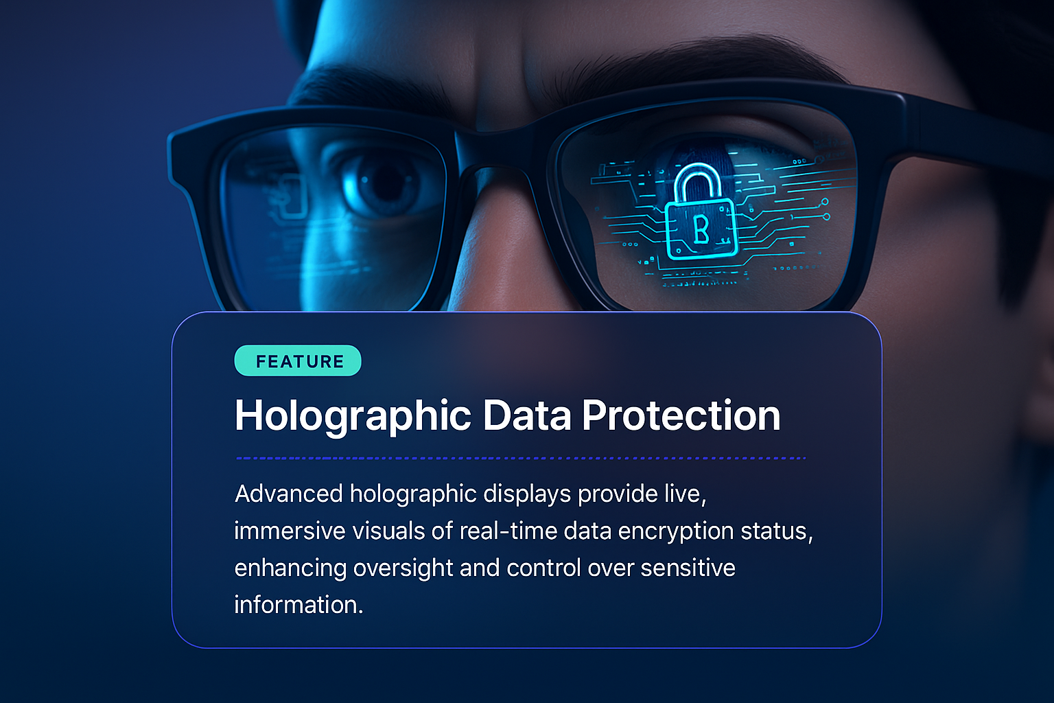 /Collection: /by davooda/Type: PNG/A close-up view of a person's eyes behind glasses, featuring a holographic display of a lock symbol and circuit patterns, representing cyber security and AI technology.