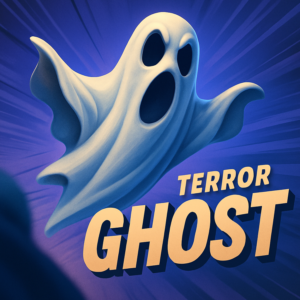 Dynamic and Frightening Ghost Illustration with Bold Title