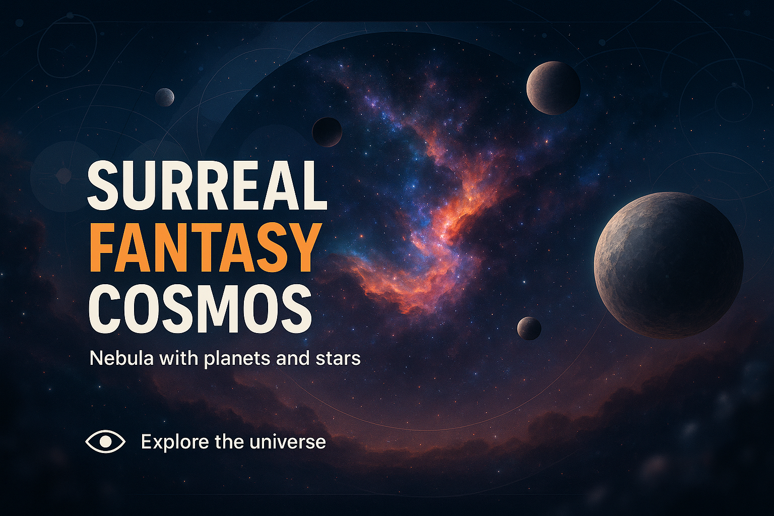 Cosmic Themed Graphic Featuring Space Nebula and Galaxy