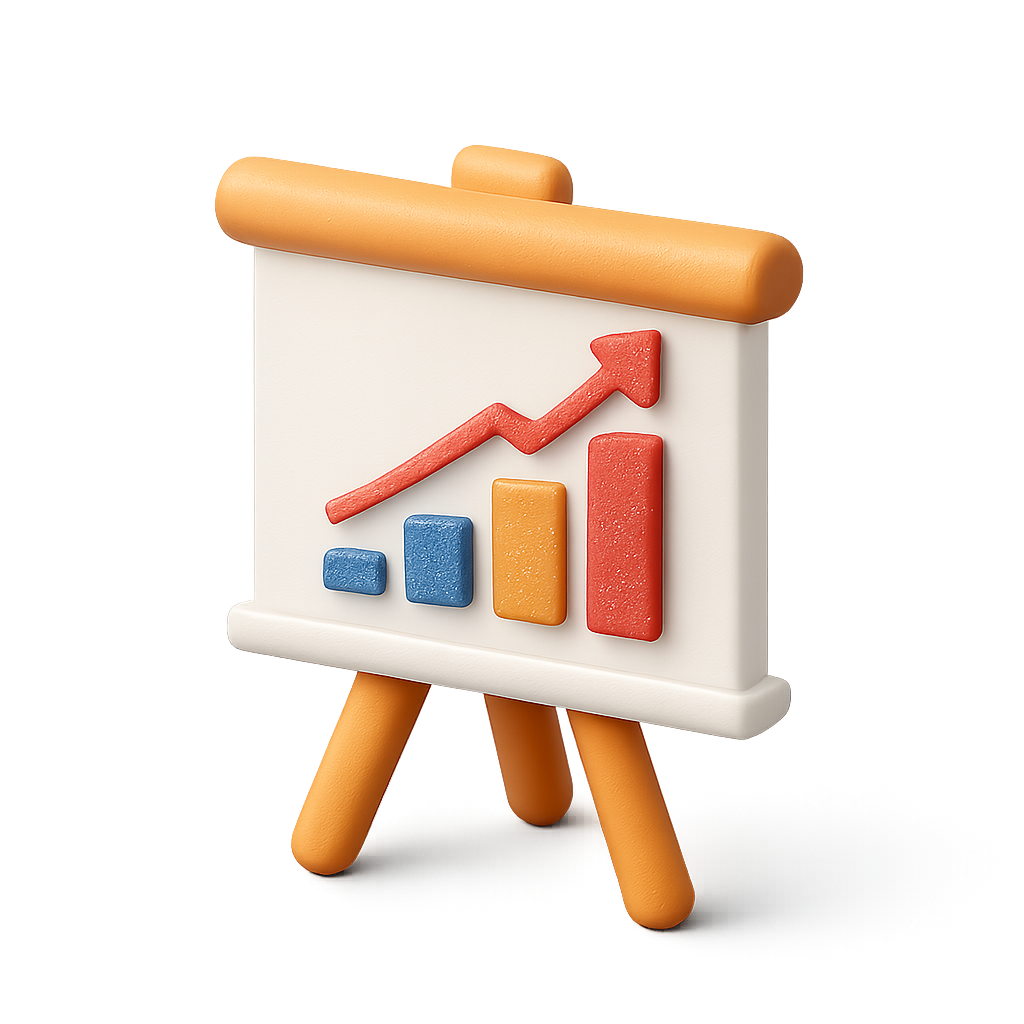/Collection: /by davooda/Type: PNG/This image features a colorful 3D isometric chart icon, showcasing a presentation board with upward trend bars in vibrant colors. It has a transparent background, enhancing its modern design.