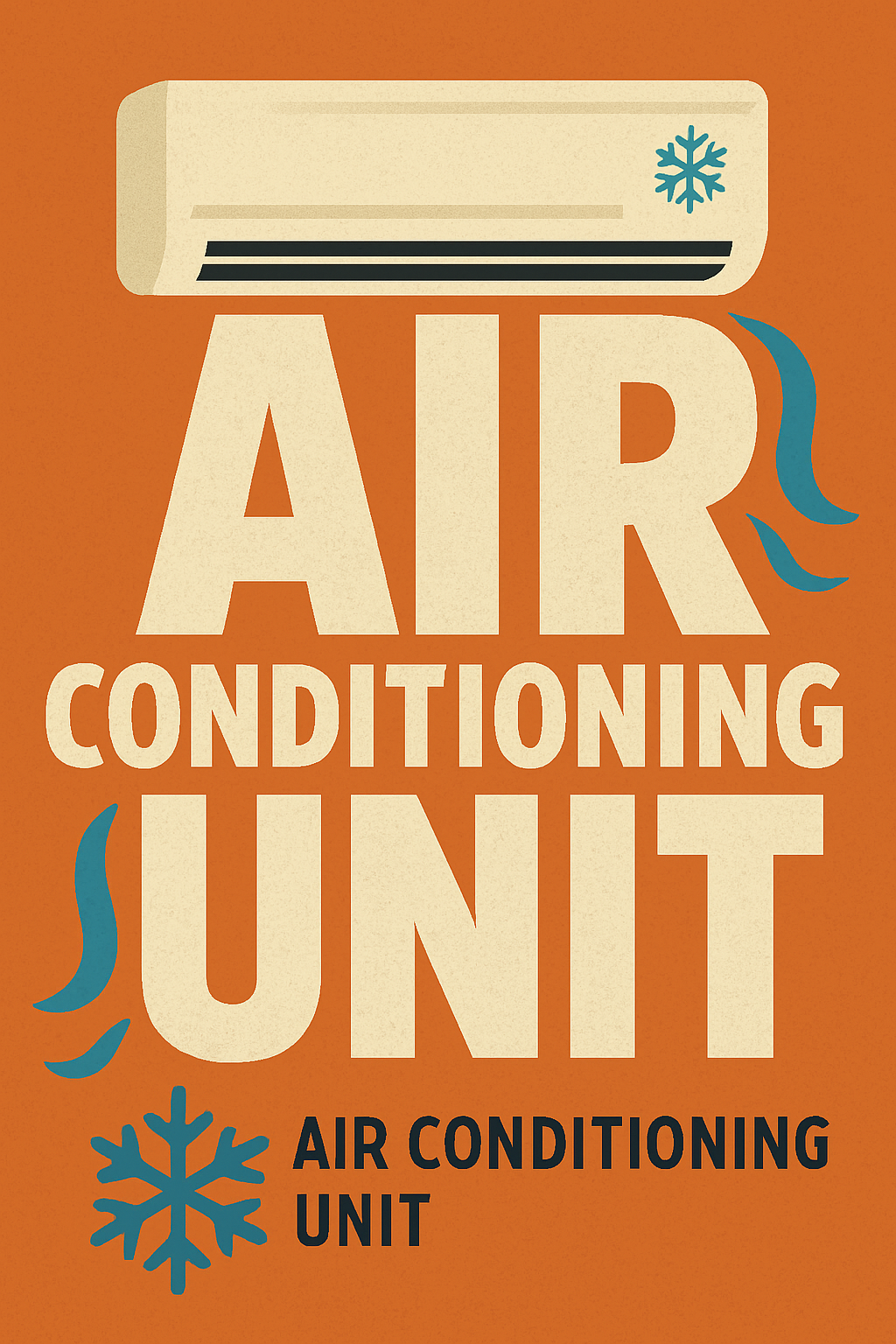 /Collection: /by davooda/Type: PNG/Stylized promotional graphic featuring an air conditioning unit illustration with bold typography and a warm color palette, ideal for HVAC marketing or service advertisements.