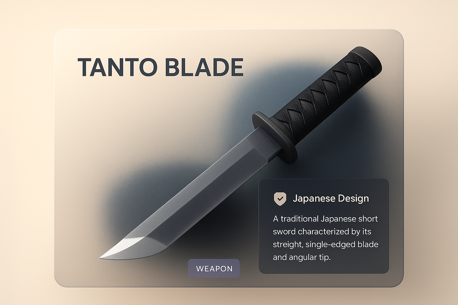 /Collection: /by davooda/Type: PNG/A 3D rendering of a tanto blade showcasing its unique design. The blade features a straight, single-edged profile and an angular tip, set against a soft gradient background for contrast.