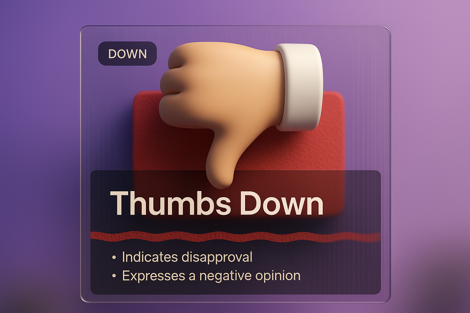 /Collection: /by davooda/Type: PNG/A 3D illustration featuring a thumbs down icon against a gradient background. The design incorporates a dark label with text and a subtle glass effect, enhancing visual appeal.