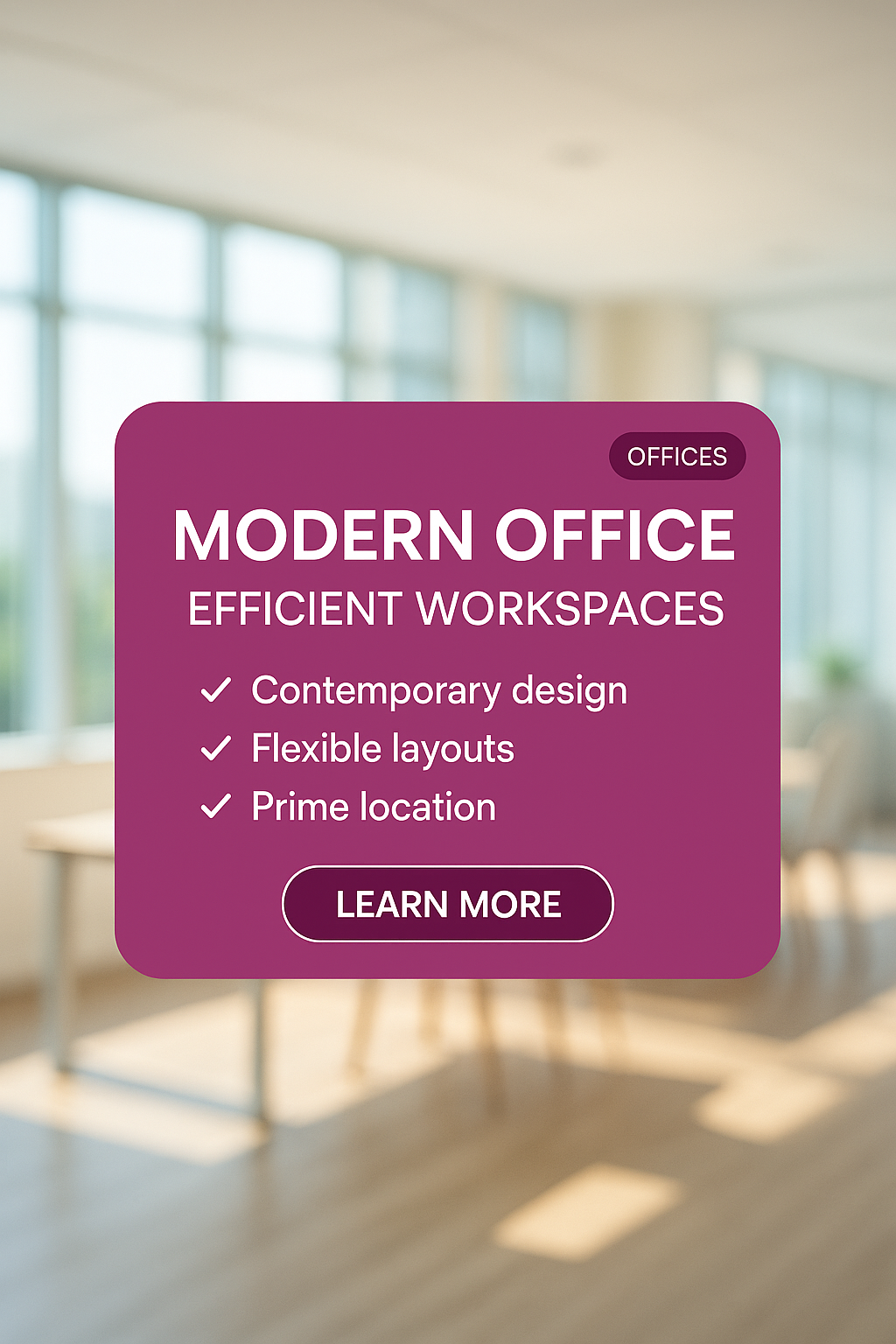 Modern Office Promotion Graphic Featuring Workspace Features