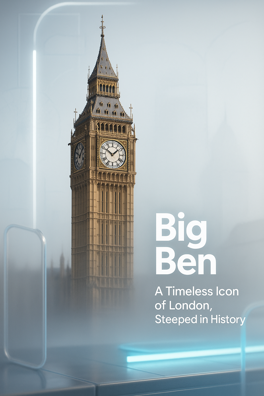A visually striking image of Big Ben, presented with a modern design aesthetic. Ideal for travel blogs, history articles, or tourism promotions.