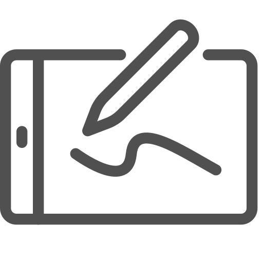 outline simple icon: digital art, drawing, personal device, stylus, tablet
