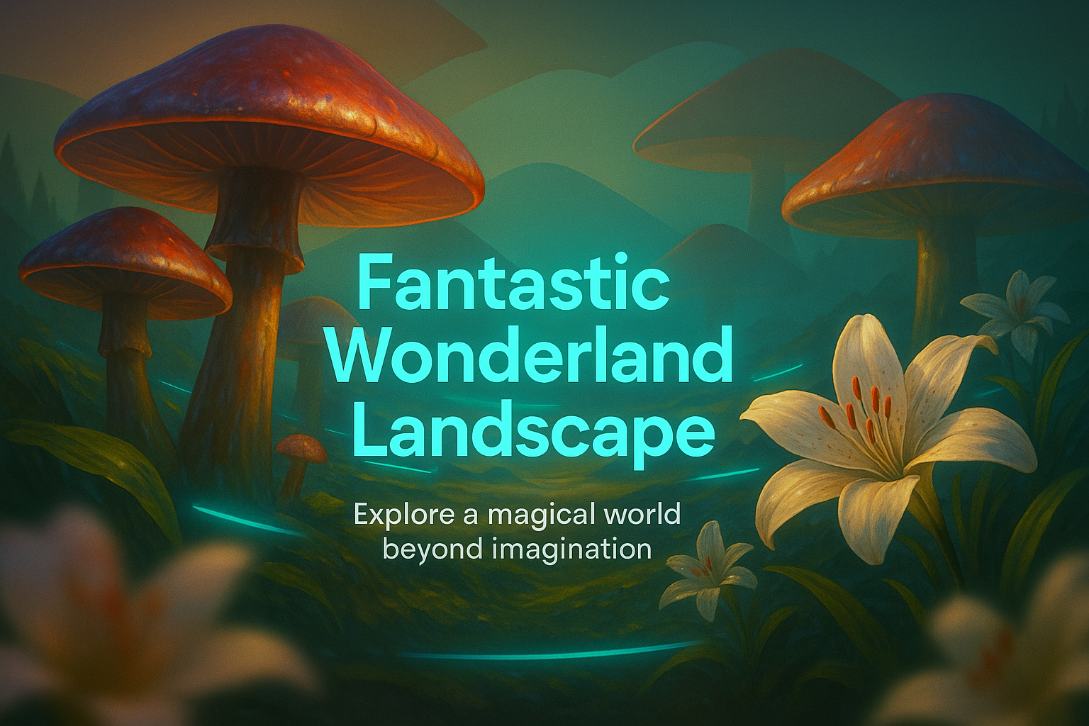 Magical Fantasy Landscape with Mushrooms and Flowers