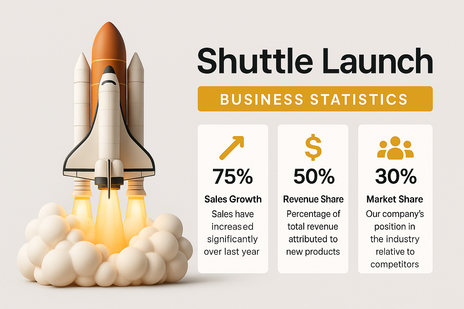 A visually engaging infographic featuring a rocket launch theme to present key business statistics, ideal for corporate presentations or reports.
