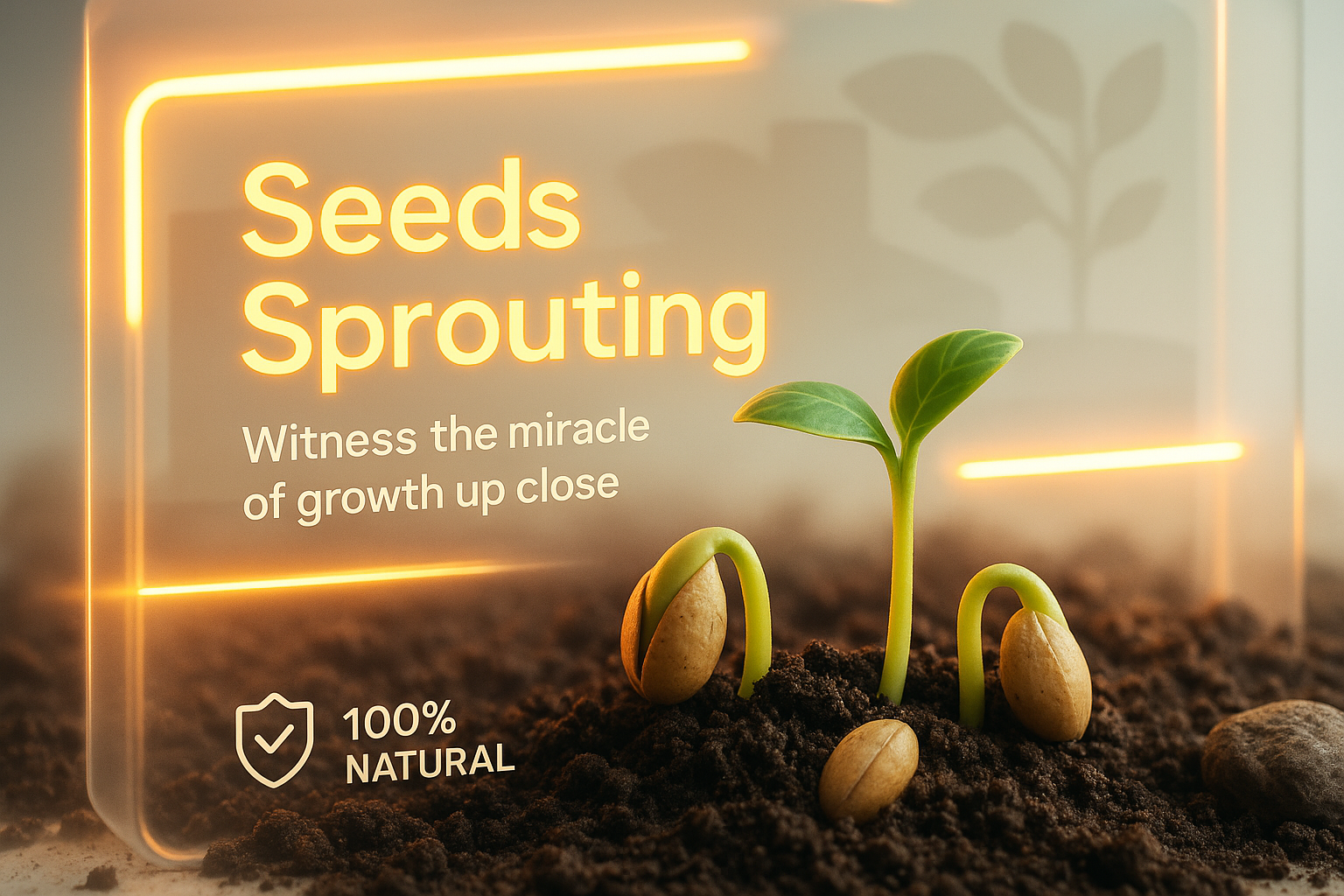 /Collection: /by davooda/Type: PNG/A visually striking image showcasing seeds sprouting from soil, enhanced with modern graphic design elements. Ideal for eco-friendly campaigns and educational content on plant growth.