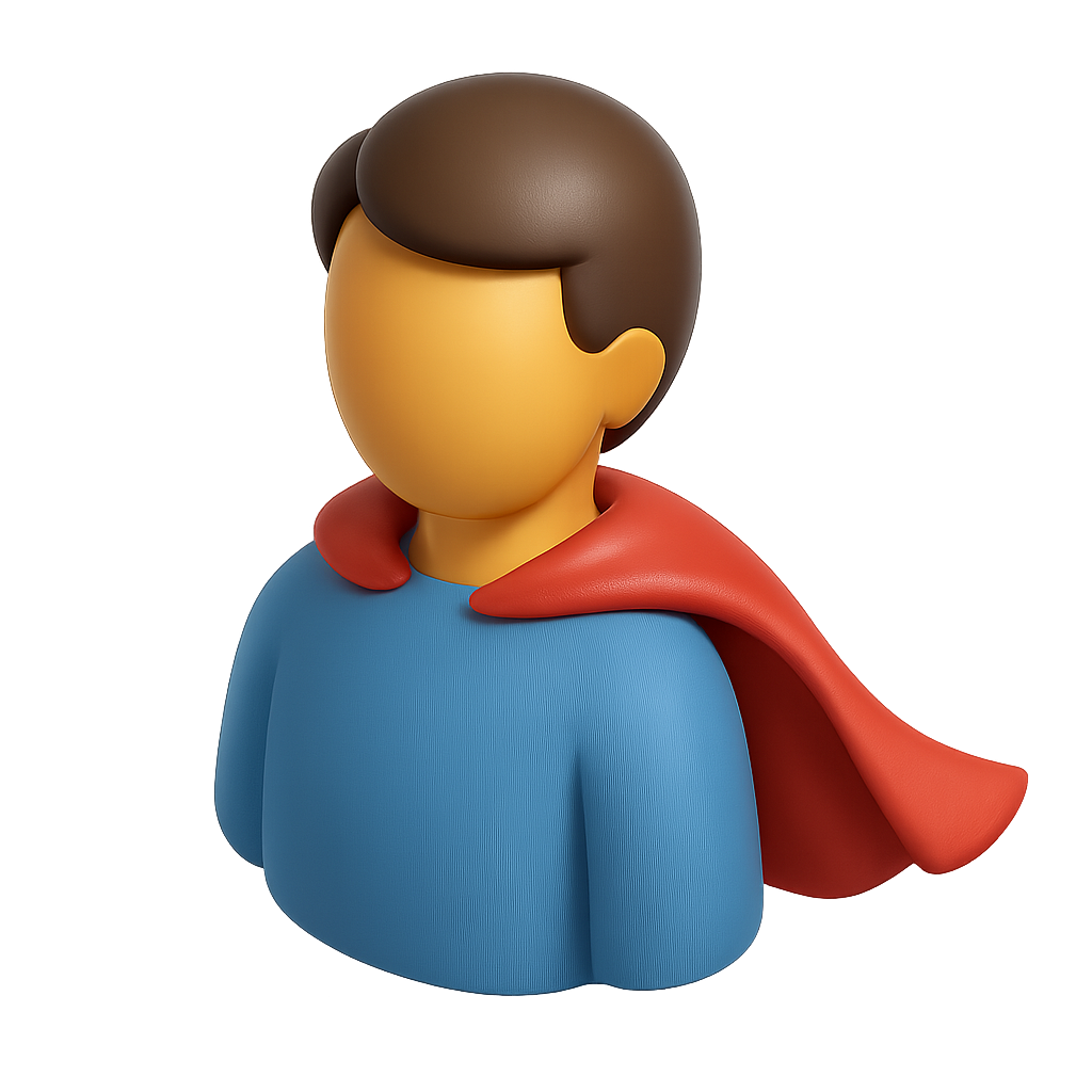 A 3D representation of a character wearing a cape, depicted in a three-quarter view. The icon features a simplistic design with vibrant colors and a soft volumetric look, suitable for various applications.