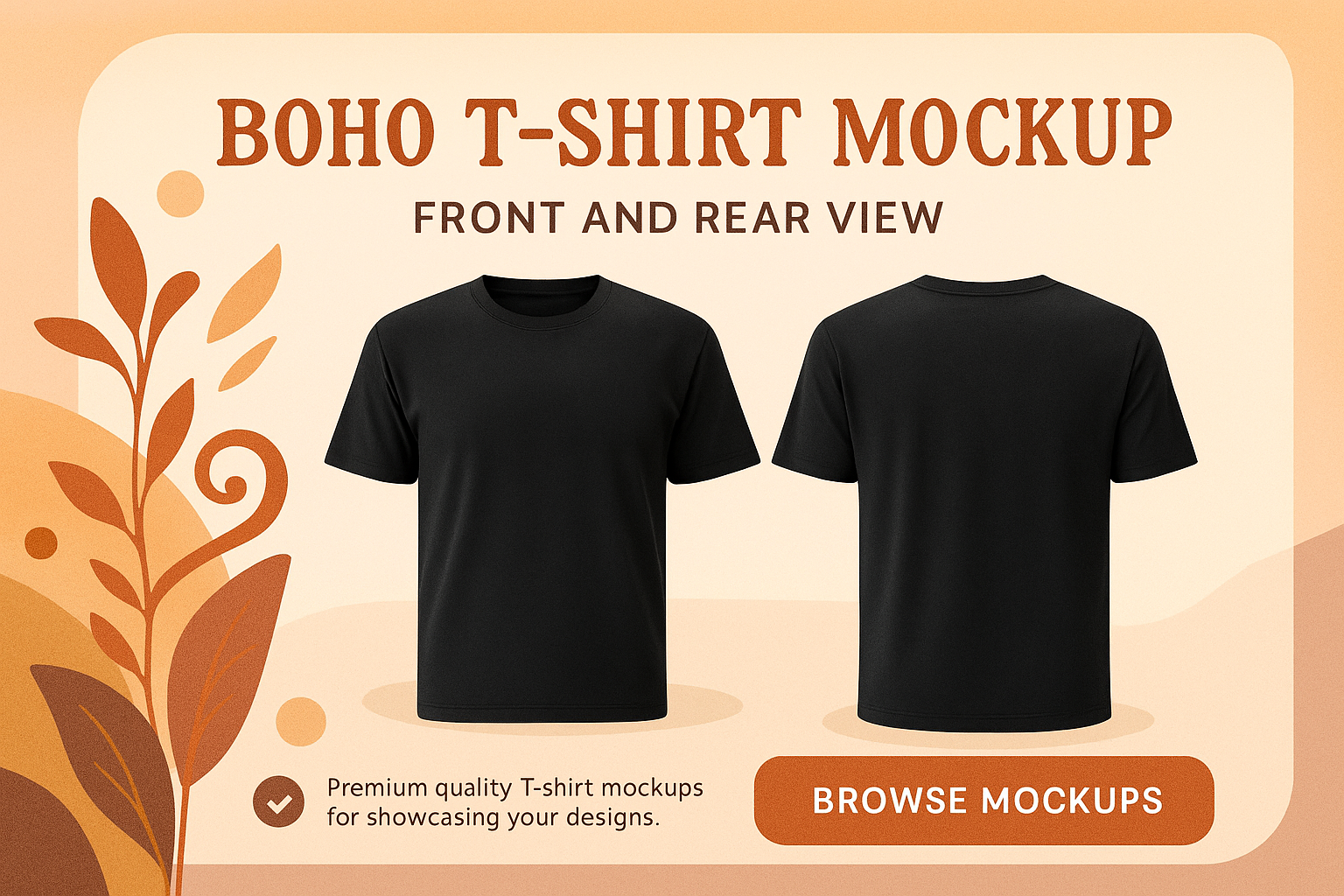 Boho Style T-Shirt Mockup Design with Front and Rear Views