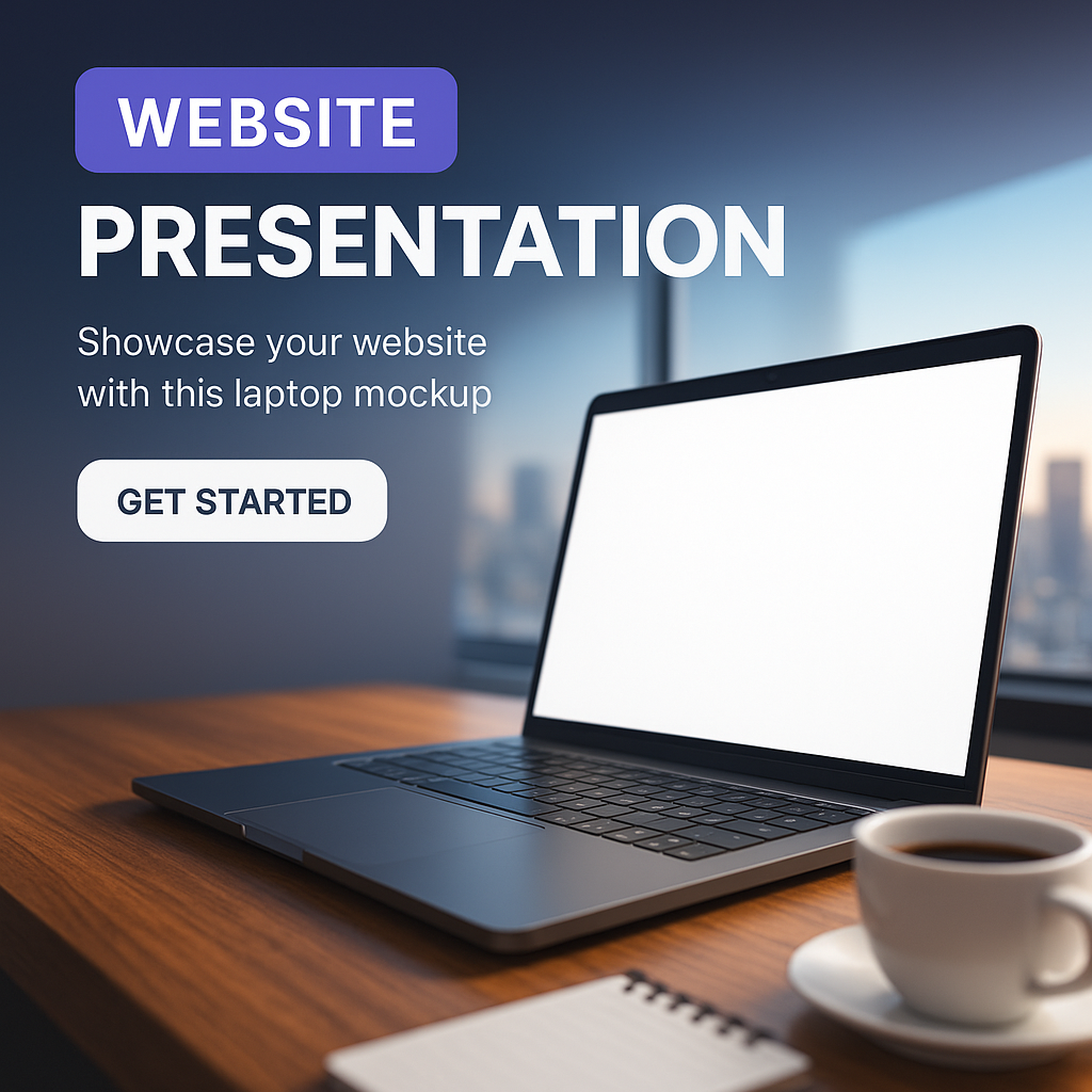 Website Presentation Mockup with Laptop and Coffee