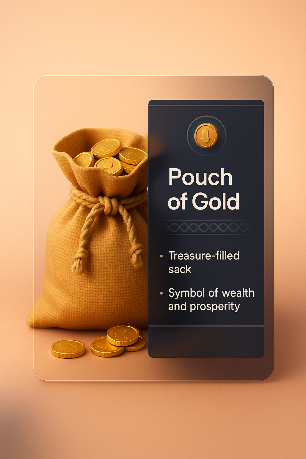 /Collection: /by davooda/Type: PNG/This image features a 3D illustration of a pouch filled with gold coins, set against a smooth gradient background. The design includes a stylish information block, enhancing the overall aesthetic.