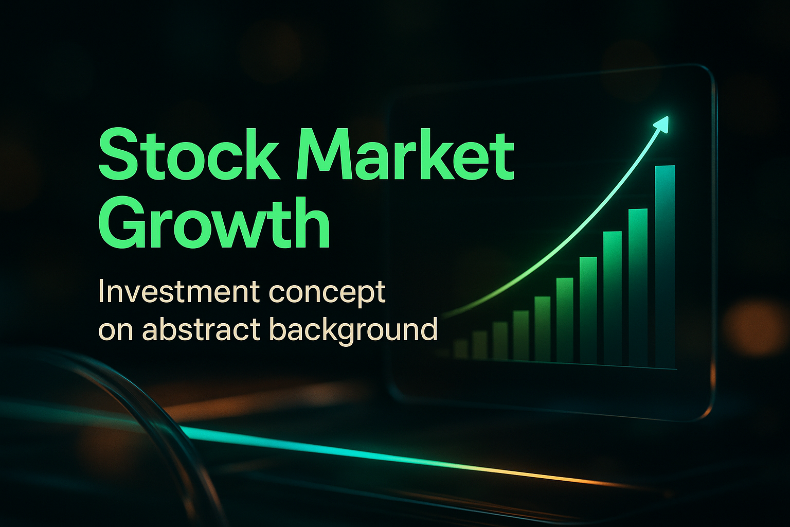 A visually engaging graphic illustrating stock market growth with a rising bar chart on an abstract background. Ideal for financial presentations and market analysis.