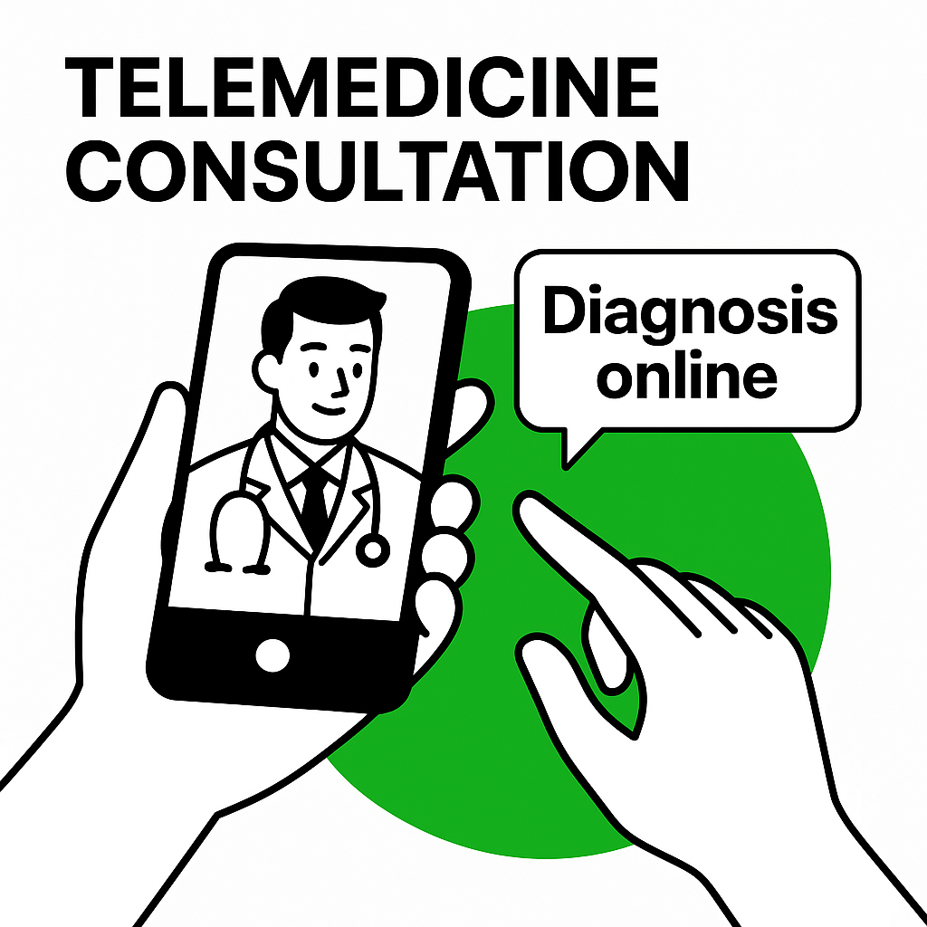 Telemedicine Promotional Graphic Featuring Online Consultation