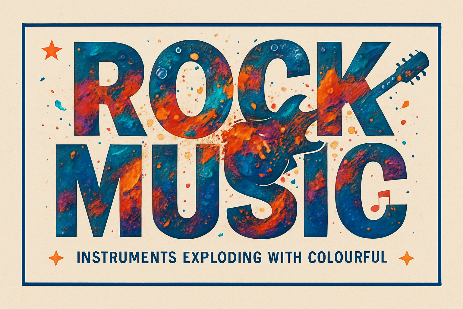 Vibrant Rock Music Promotional Graphic with Instrument Theme