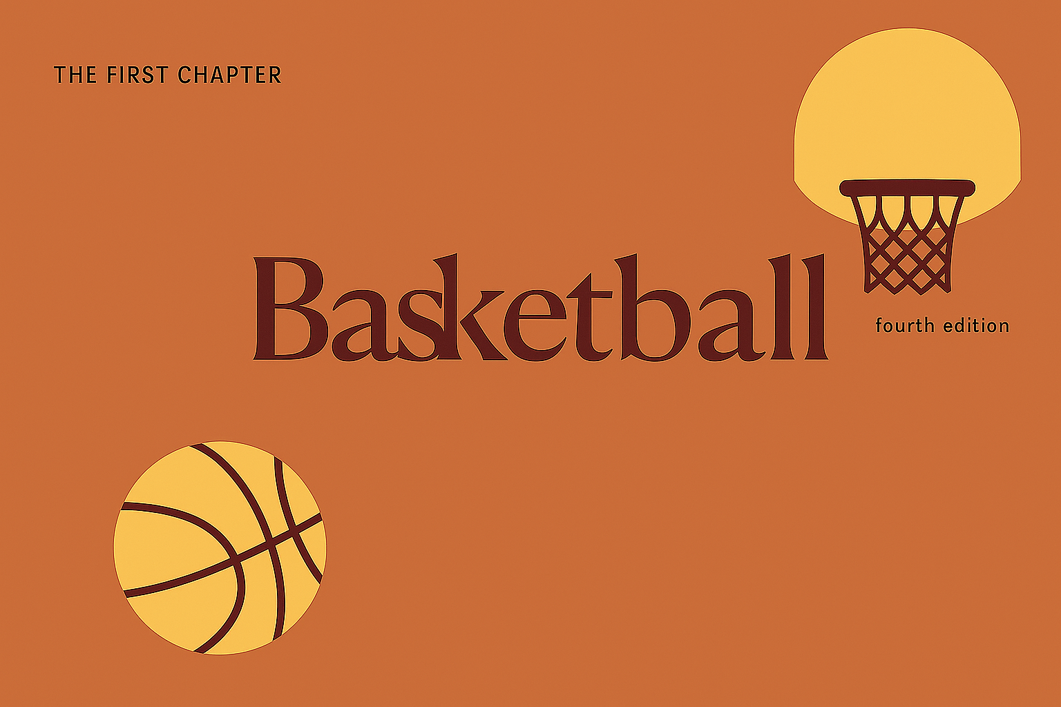 A stylish book cover for a basketball-themed text, featuring a warm orange background, bold typography, and basketball graphics. The design emphasizes the sport's dynamic nature.