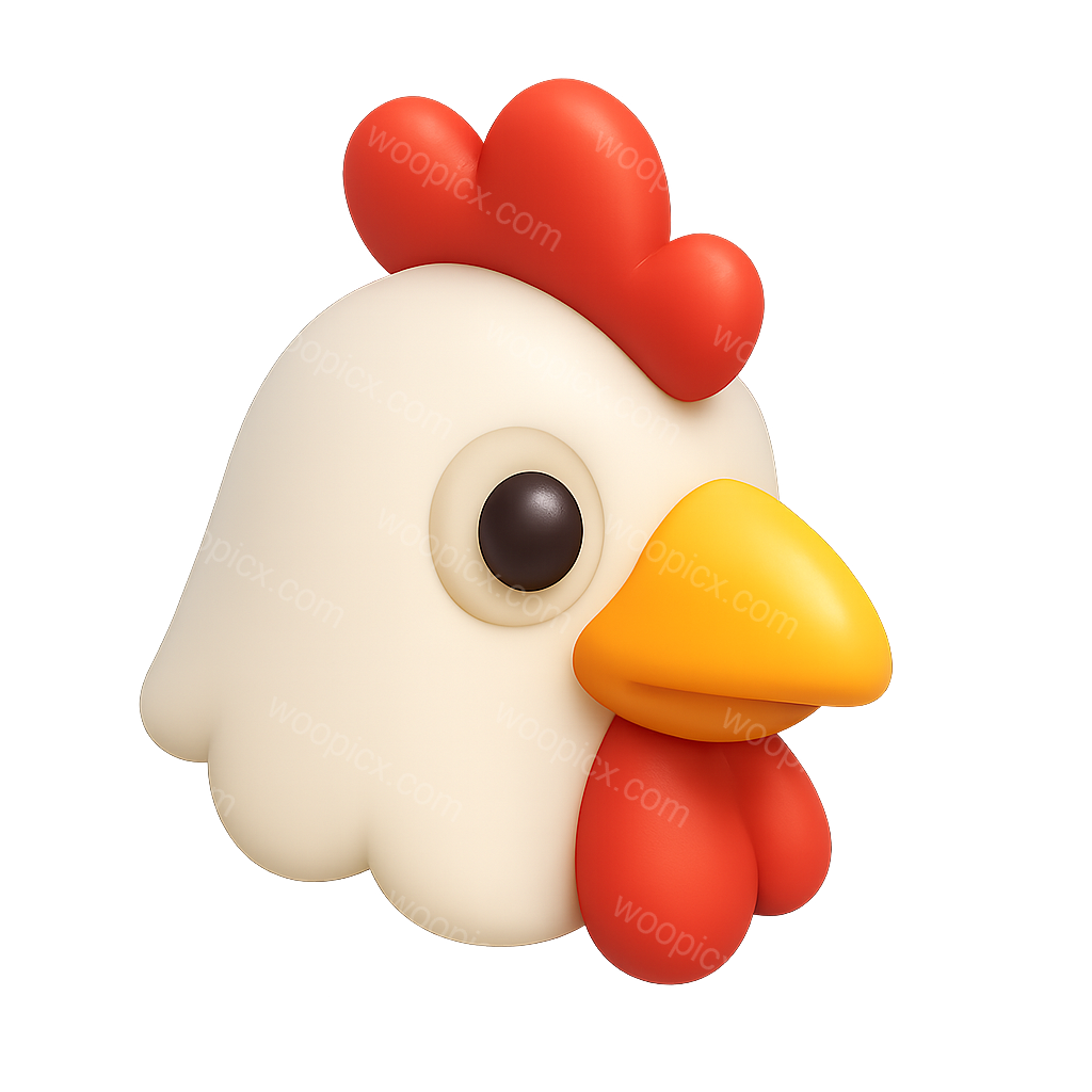 Stylized 3D Chicken Head Icon in Isometric View