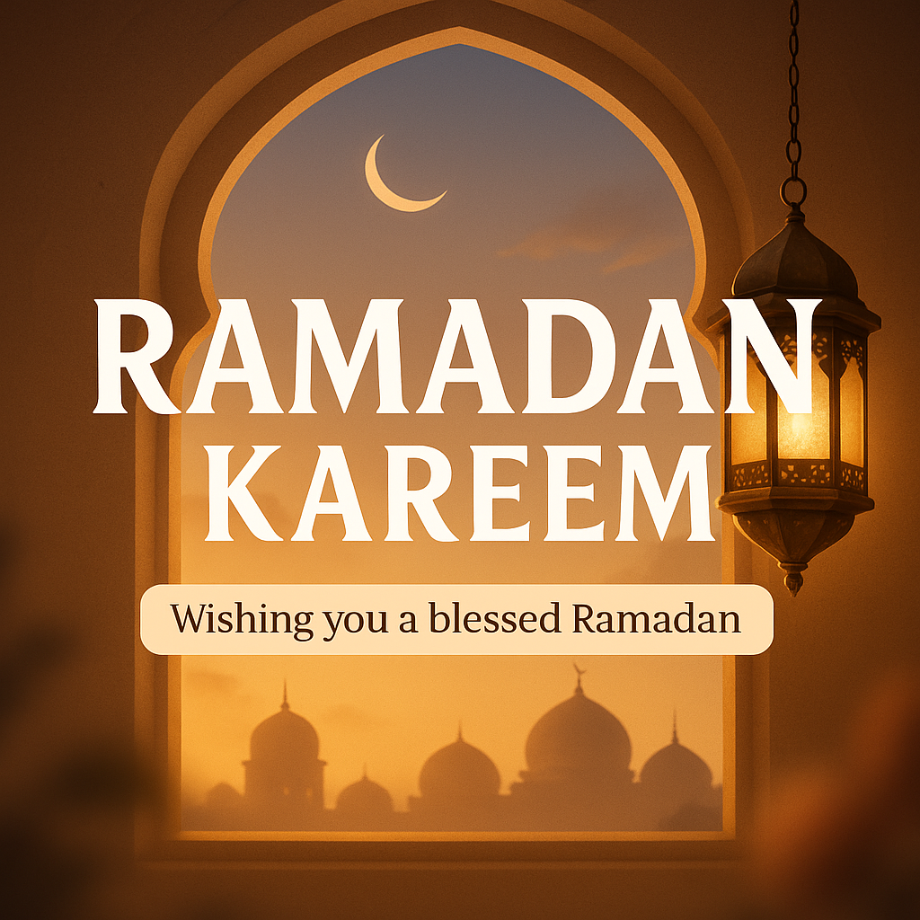 Elegant Ramadan Greeting Card with Lantern and Crescent Moon