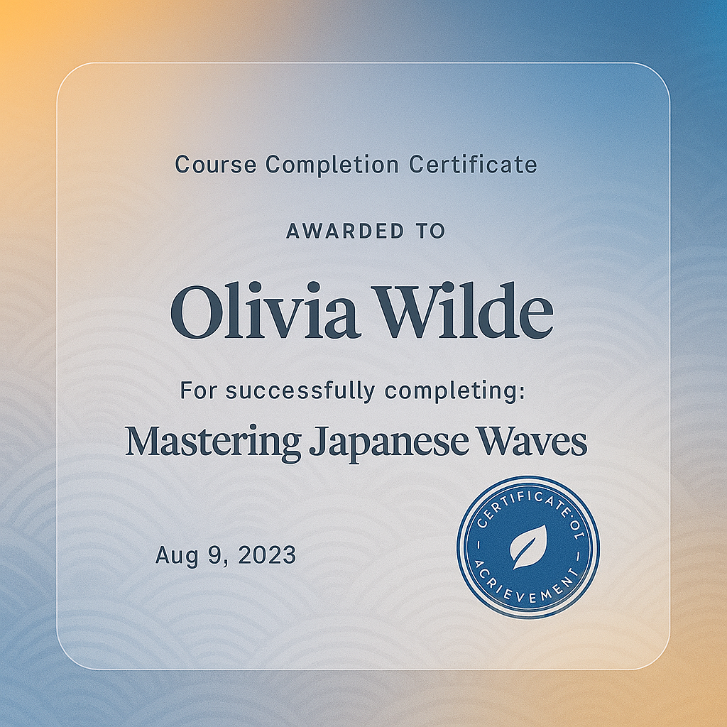 Certificate of Completion Design Featuring Japanese Waves