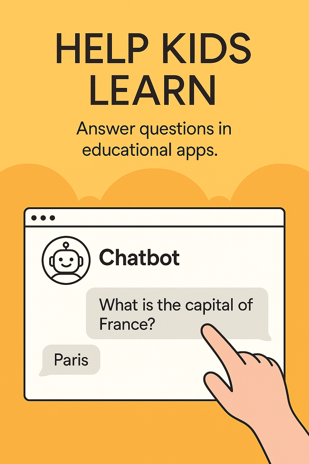 Illustrative graphic showcasing a chatbot interaction designed for educational purposes, ideal for promoting interactive learning apps targeted at children.