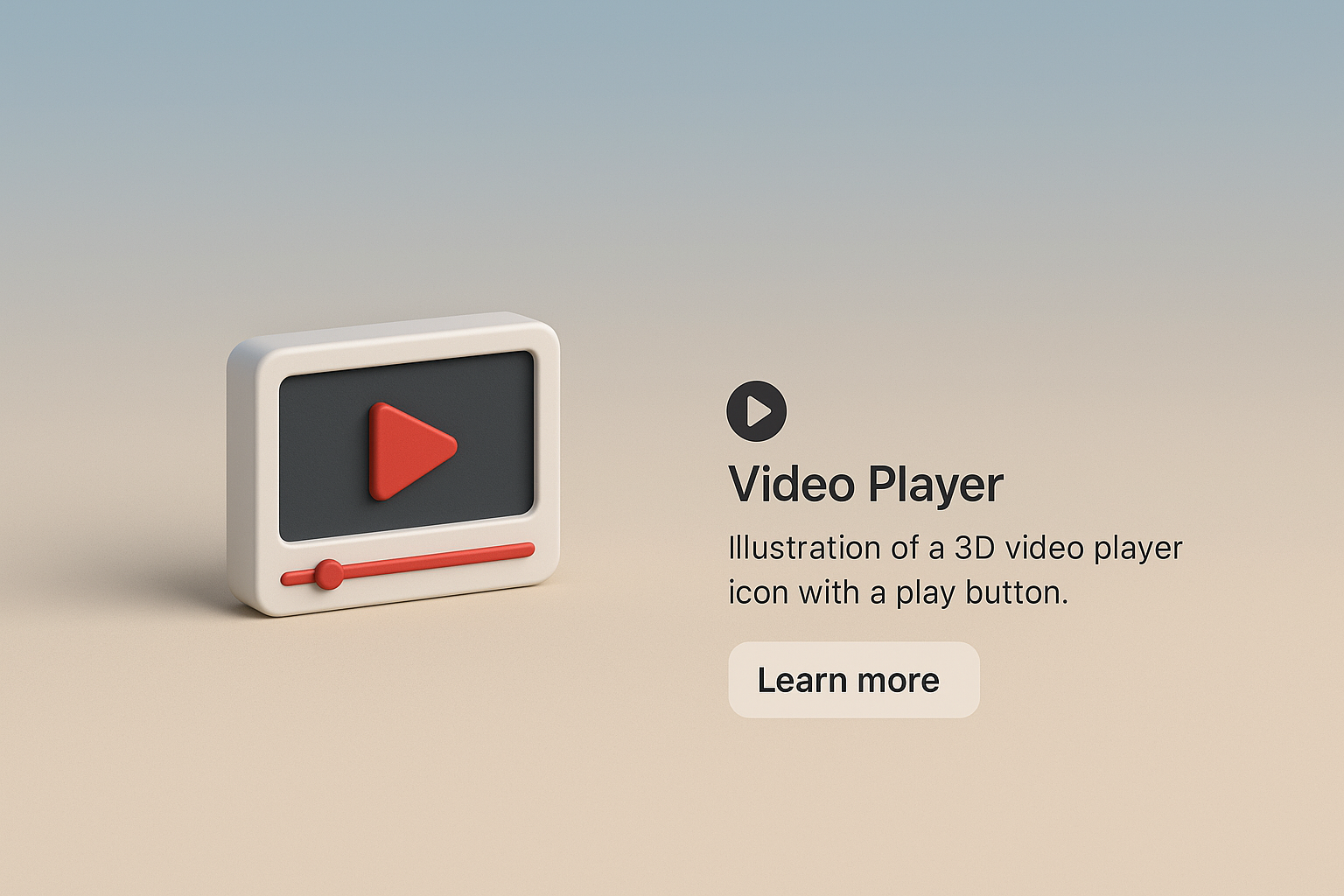 /Collection: /by davooda/Type: PNG/A detailed 3D illustration of a video player icon featuring a play button. The design has a smooth gradient background, creating a realistic scene that emphasizes the icon's features.