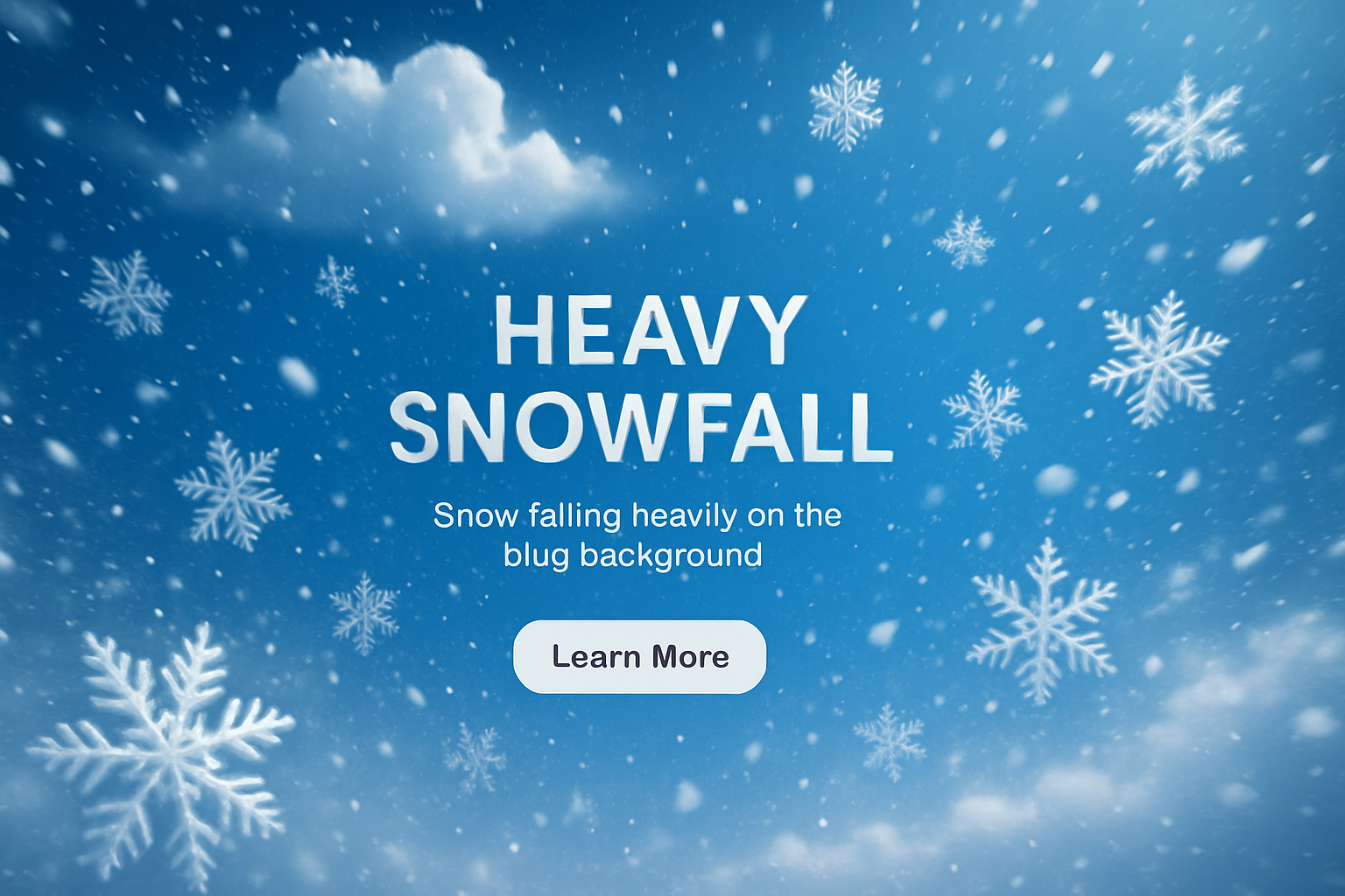 /Collection: /by davooda/Type: PNG/This image is a promotional graphic alerting viewers about heavy snowfall. It features a cool blue background with snowflakes and clouds, ideal for winter weather updates.