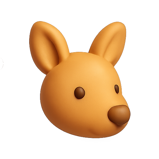 A stylized 3D representation of a cartoon animal head, featuring soft curves and a warm color palette. Ideal for children's products or playful branding.