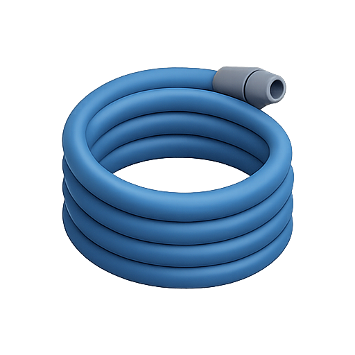 A realistic illustration of a blue garden hose, coiled neatly for storage. Ideal for gardening or outdoor equipment graphics.