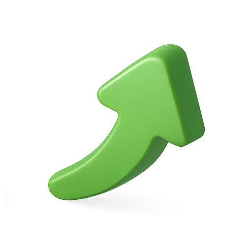 A stylized 3D green arrow icon symbolizing upward movement or growth, suitable for use in digital graphics, infographics, and marketing materials.
