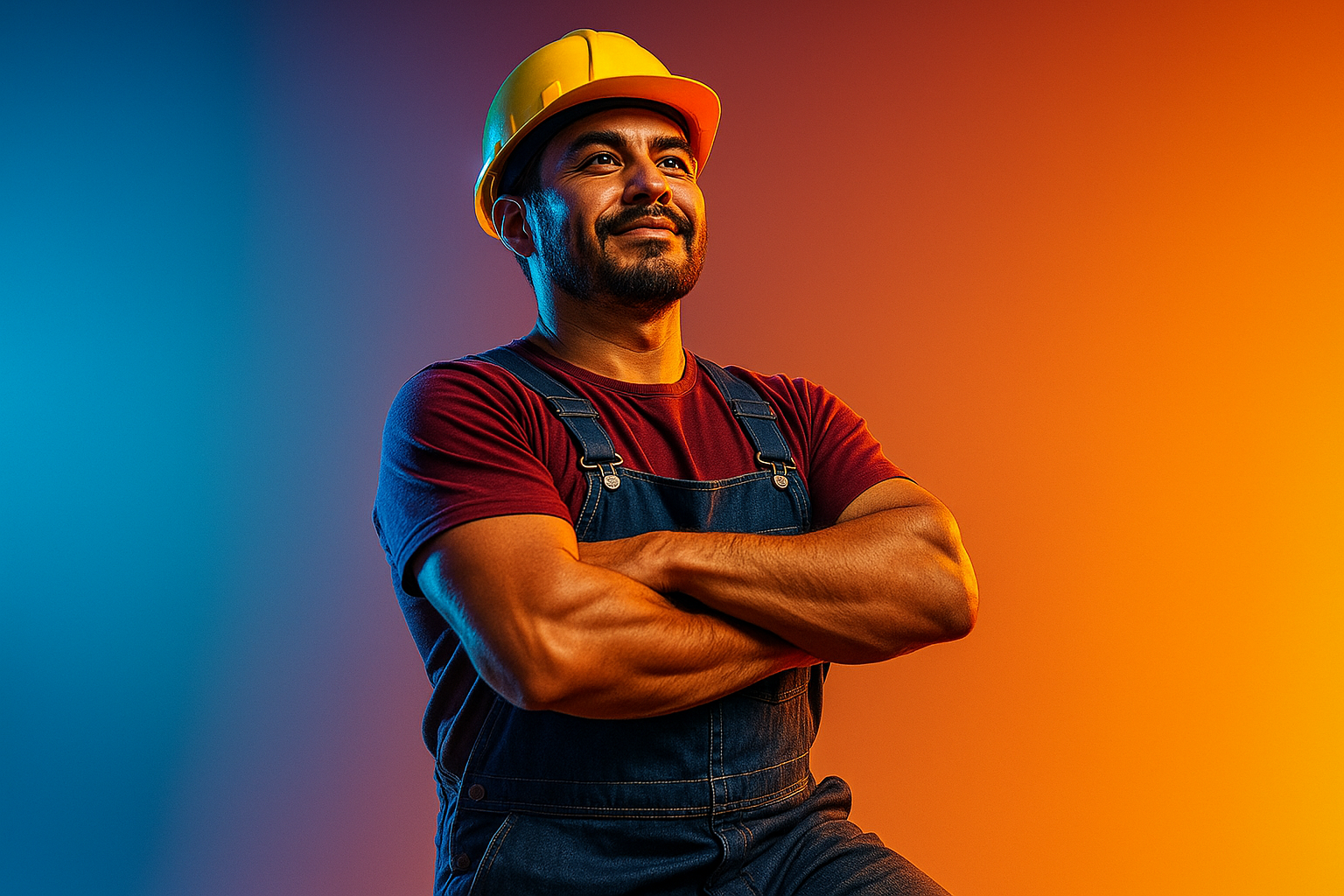 Strong Portrait of a Skilled Construction Professional in Bold Design