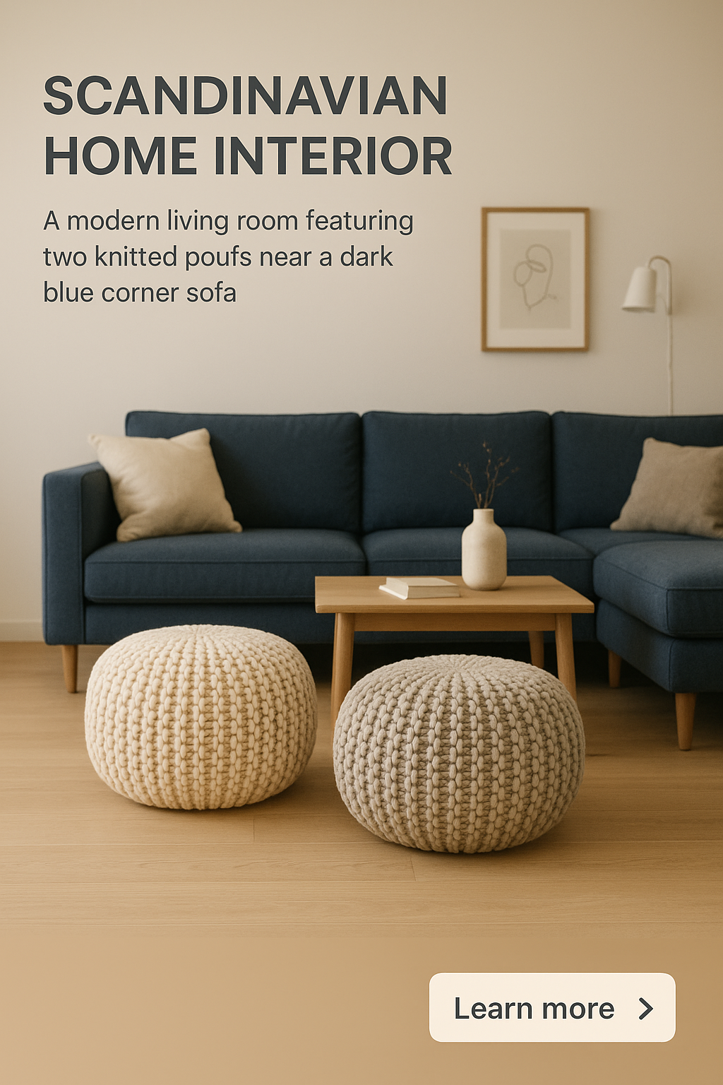 Scandinavian Living Room with Knitted Poufs and Sofa