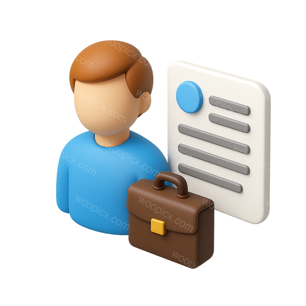 /Premium/Collection: /by davooda/Type: PNG/A stylized 3D icon depicting a person with a briefcase next to a document. The design features a modern look with a three-quarter view and a vibrant color palette.
