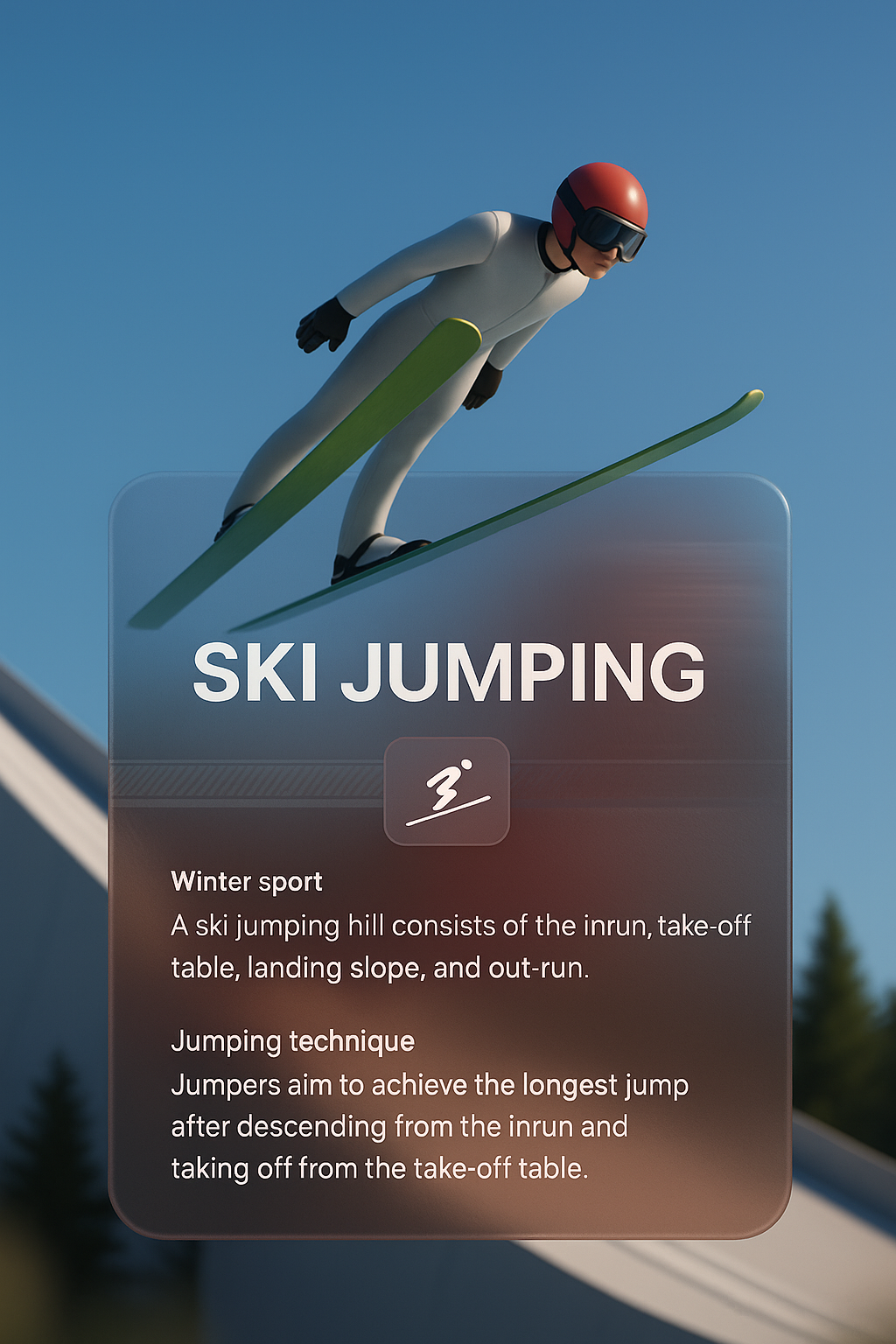 3D Design Illustration of Ski Jumping with Integrated Text Blocks