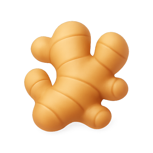 A modern 3D illustration of a ginger root, showcasing its unique shape and texture. Ideal for food-related designs, packaging, or educational content about spices.