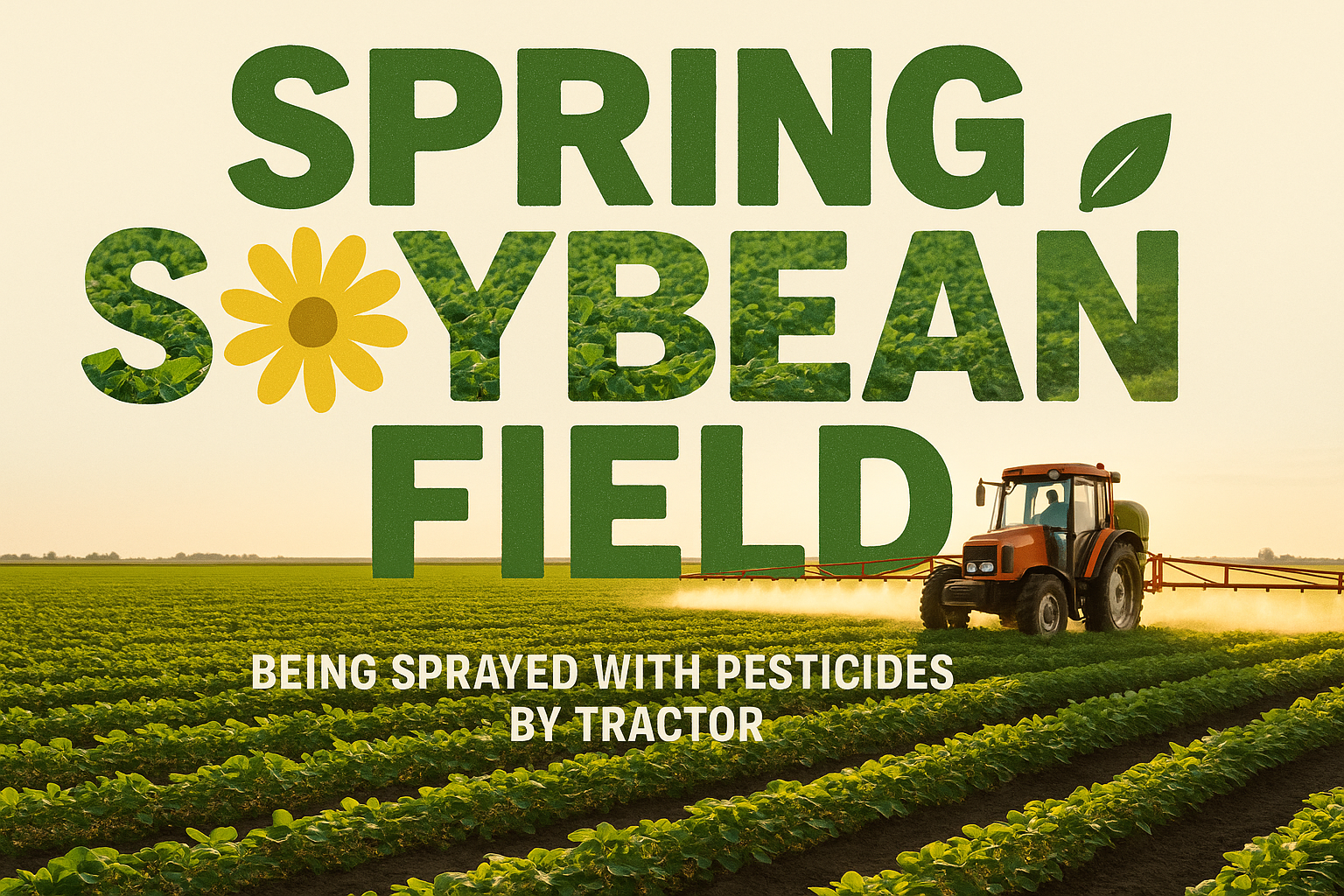 /Collection: /by davooda/Type: PNG/Vibrant agricultural image showcasing a soybean field being treated with pesticides by a tractor, emphasizing springtime farming activities. Ideal for agricultural marketing or educational purposes.
