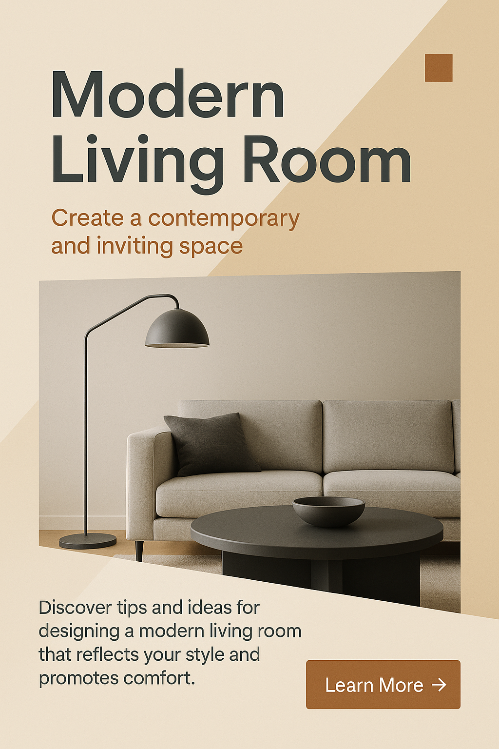 Stylish Living Room Advertisement with Modern Design Elements