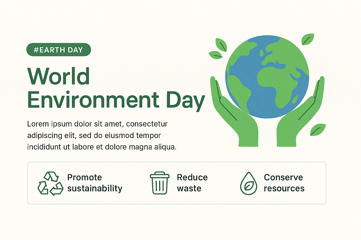 /Collection: /by davooda/Type: PNG/Informative graphic for World Environment Day featuring hands holding the Earth, promoting sustainability and resource conservation. Ideal for educational or environmental campaigns.
