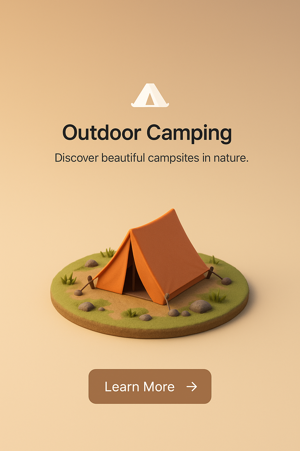 Realistic 3D Camping Scene with Tent and Nature Elements