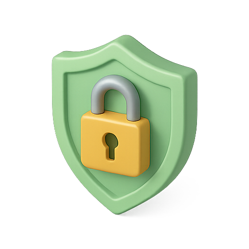 A stylized 3D icon representing a shield with a padlock, symbolizing protection and security. Ideal for digital security, privacy, or technology-related content.