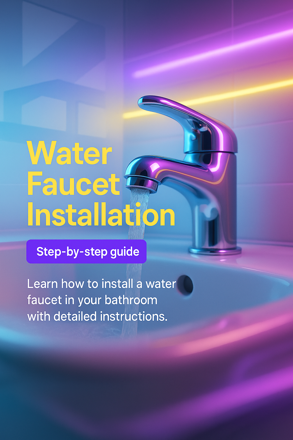 /Collection: /by davooda/Type: PNG/Stylish instructional graphic featuring a water faucet with vibrant lighting effects, designed for DIY enthusiasts looking to install bathroom fixtures. Ideal for online tutorials.