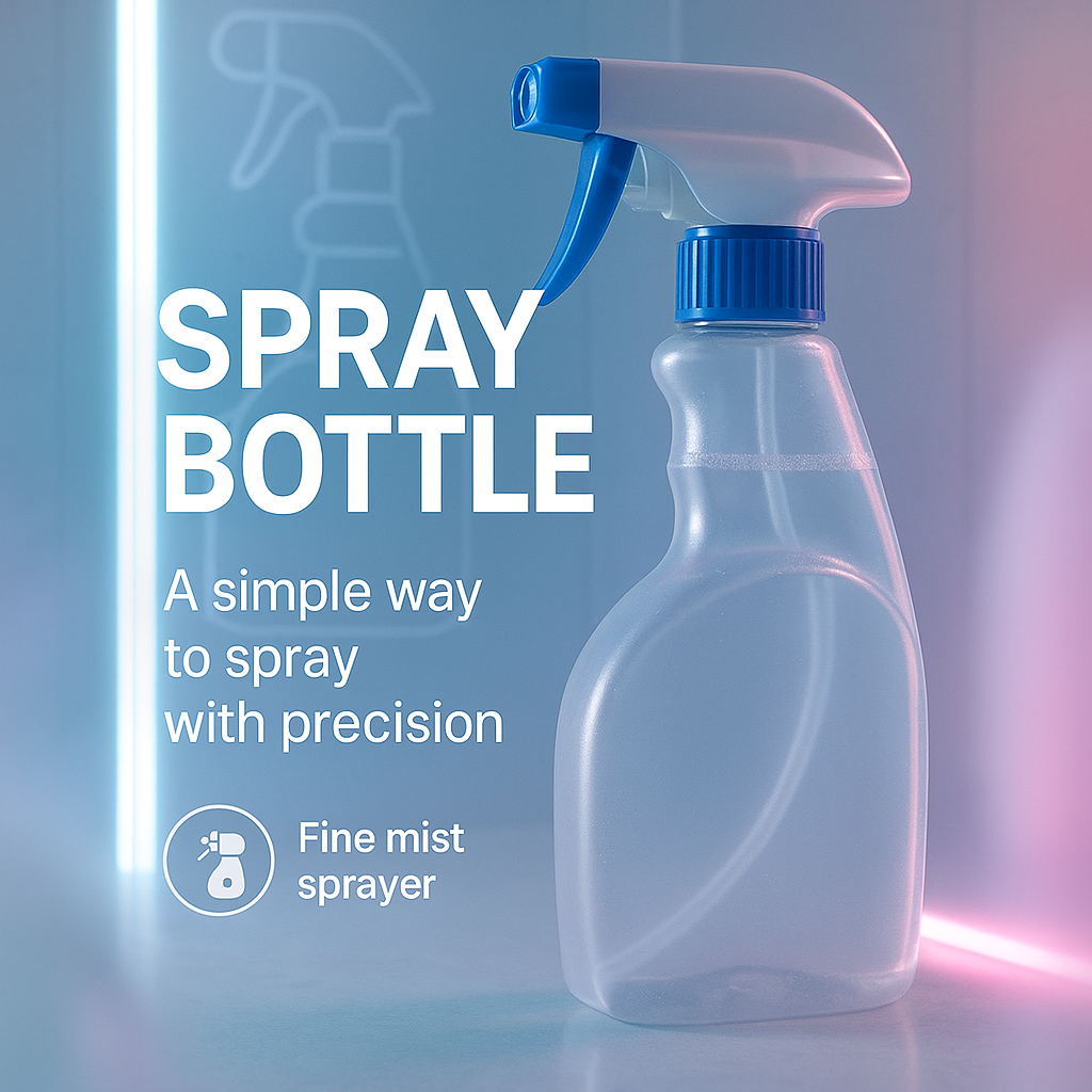 /Collection: /by davooda/Type: PNG/Product display of a transparent spray bottle featuring soft neon lighting, ideal for e-commerce or advertising purposes. The design emphasizes precision and functionality.