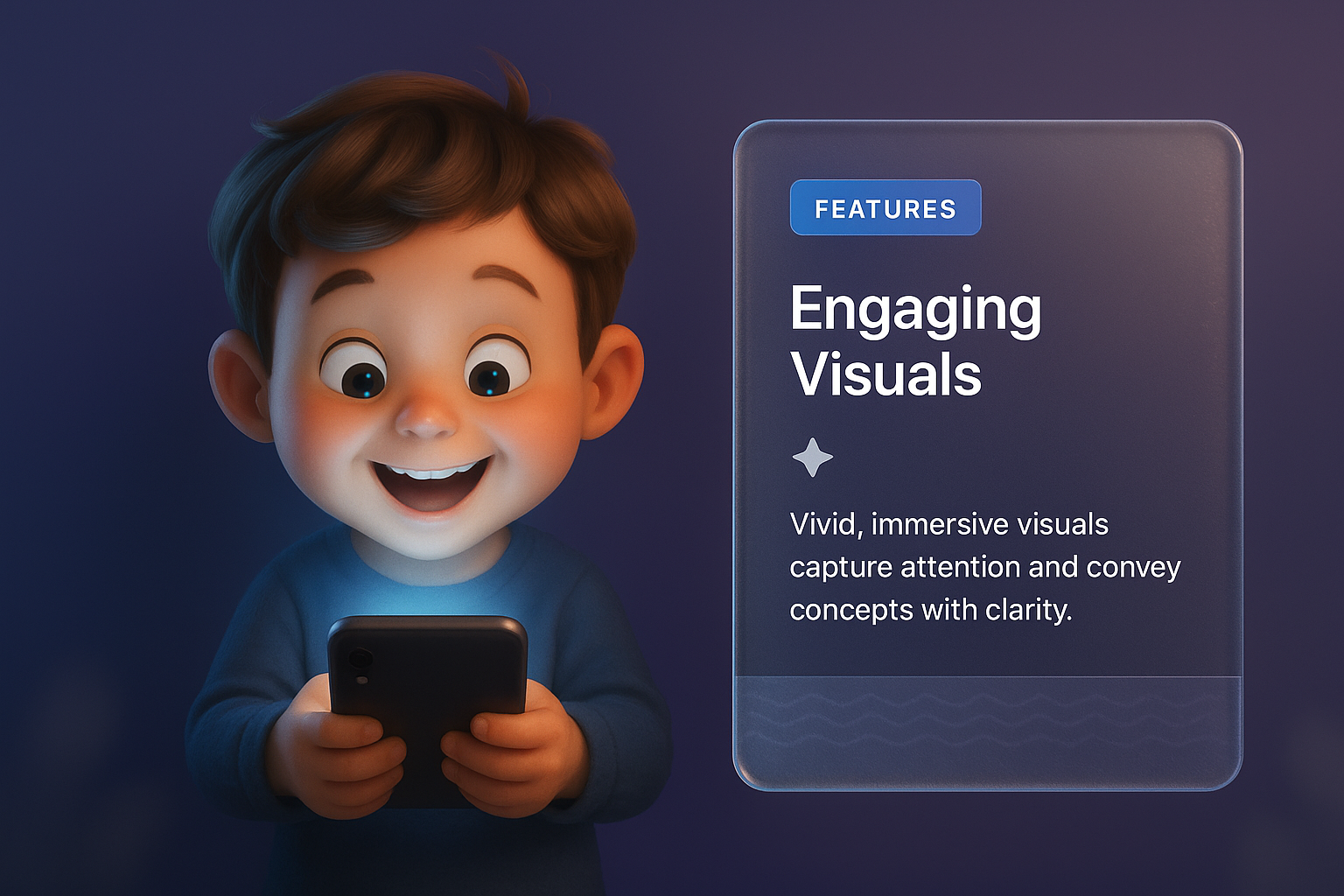 A cheerful child holding a phone with a glowing screen, showcasing joy on their face. The background features a smooth gradient, enhancing the 3D illustration's vibrant colors.