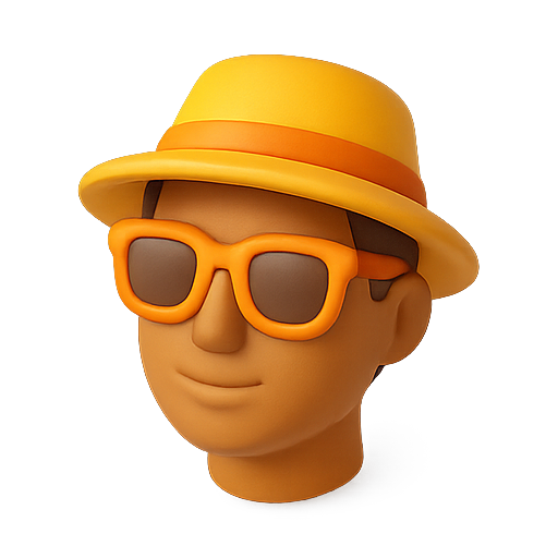 A fun and vibrant 3D character head wearing orange sunglasses and a yellow hat, perfect for digital avatars or playful design elements.