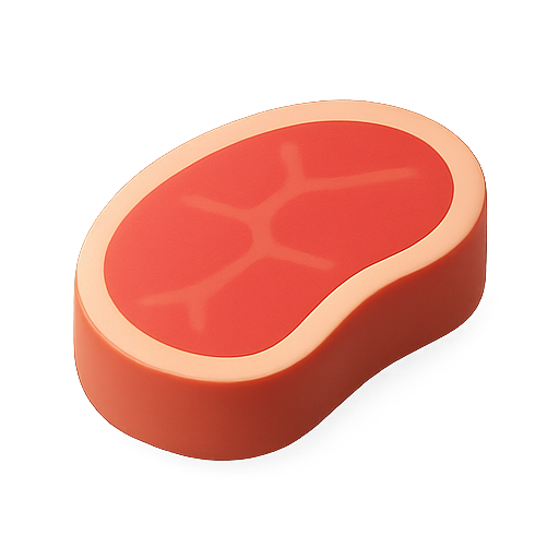 Cute rubber toy shaped like a piece of meat, designed for pet play. The vibrant colors and realistic form make it an appealing addition to pet accessories.