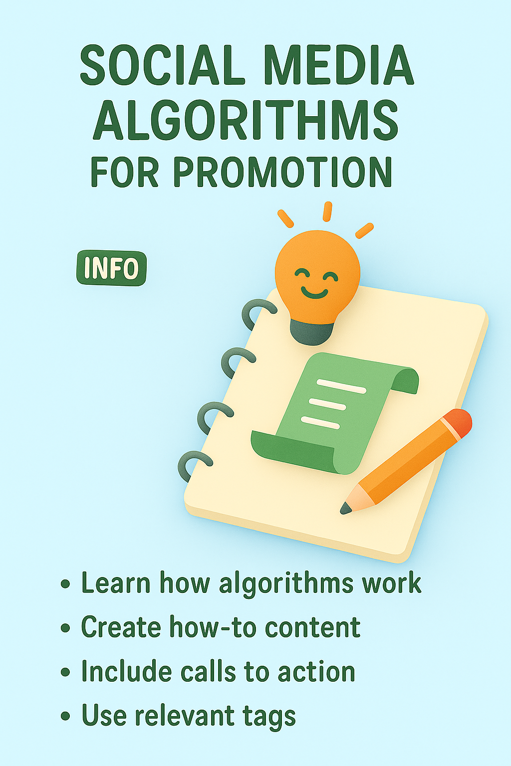 /Collection: /by davooda/Type: PNG/A visually engaging infographic that explains social media algorithms, featuring a playful design with icons and a clear layout, ideal for educational content in digital marketing.